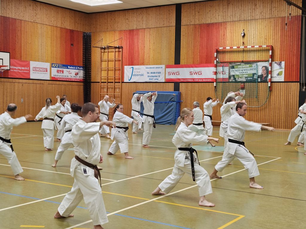 Nach der Pause vertieften die Teilnehmer Themen wie Kumite (Kampf), die Kata Heian Shodan sowie Grundlagen zur Hüftbewegung und Gewichtsverlagerung.