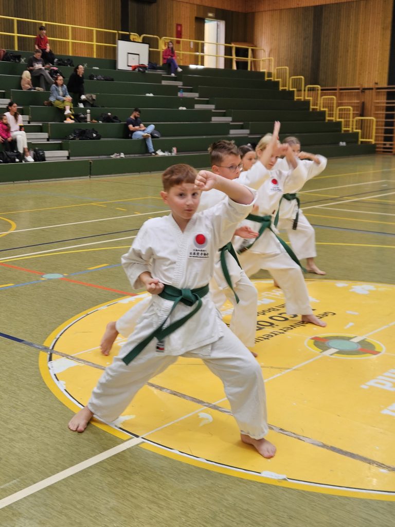 Der Samstag begann mit Kindertraining, gefolgt von intensiven Einheiten für höher graduierte Karateka. Auf dem Programm standen unter anderem Kihon, Krafttraining, Gewichtsverlagerung, Hüftrotation, Schnelligkeit sowie im großen Training, die Kata (Abfolge bestimmter Techniken und Bewegungen) Bassai Dai.