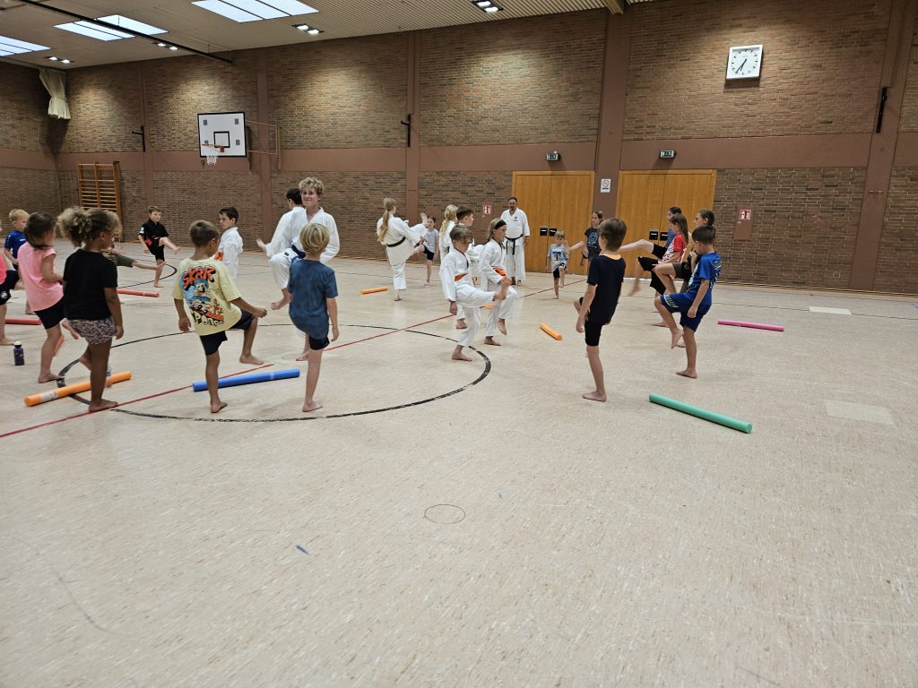 Der, von den Trainern gesetzte Fokus der Übungen lag vor allem auf der Entwicklung von Koordination und Schnelligkeit. Außerdem wurden den Kindern erste Grundtechniken des Karates gezeigt. Besonders viel Spaß hatten sie an Kata (vorgegebene Bewegungsabläufe), sowie an einfachen Selbstverteidigungstechniken, die auf kindgerechte Weise nähergebracht wurden.